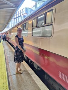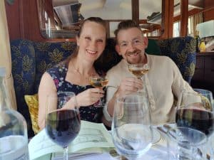 The journey, including 3 course meal and champagne didn’t disappoint. As the English countryside rolled by we enjoyed the leisurely pace and relaxed conversation on board with our co-travellers and each other. There’s something about travelling by train that conjures up a bygone age. We loved the pomp and circumstance and romance of it all and it ended too quickly, but what a great experience.